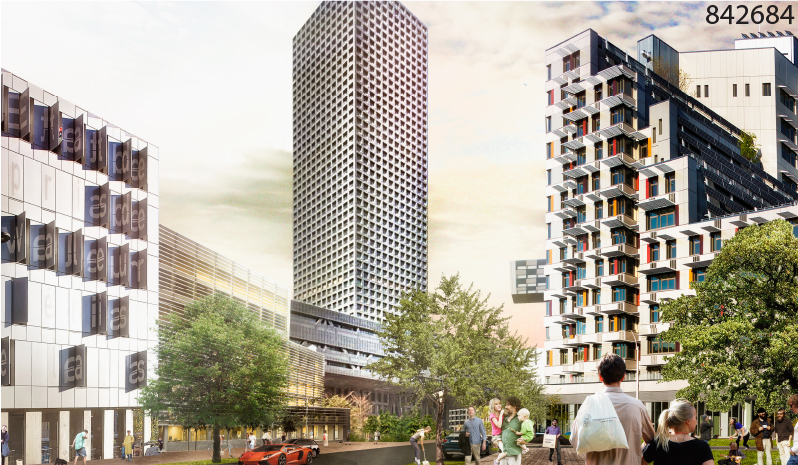 Пожелание заказчика 200.000м² жилого и 100.000м² офисно-делового назначения на площади в 9га при актуальных нормативах возможно реализовалось только высотными зданиями от 16 до 25 этажей. Но также в техзадании стояло желание заказчика получить максимально качественное городское пространство. Проект должен связаться с соседним участком бывшего завода «Серп и Молот», мастерплан которого был разработан голландской компанией MVRDV.