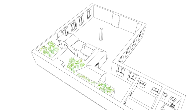 Экспериментальный проект, объединил идею цепочки роста городского ландшафта в интерьере бывшего индустриального пространства для реализации жилого и рабочего пространста с концептом — «город в доме».