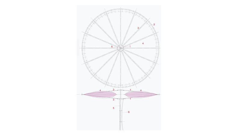Это комбинация двух известных конструкций — колеса и пневматической подушки. Два элемента дополняют друг друга, создавая стабильный и очень легкий зонт, привлекающий внимание своей свободной формой и транспарентностью. Используемые конструкции образуют непредсказуемую оригинальную форму. Таким образом в случае с гибридным зонтом форма находит сама себя.