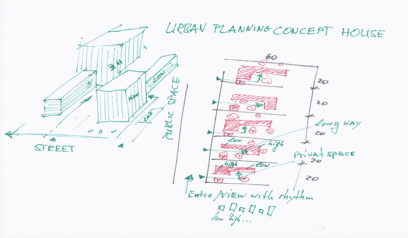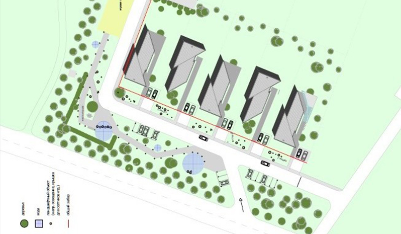 Задача состояла в том, чтобы спроектировать 5 апарт-отелей в качестве коттеджных домиков на узких участках (20мх60м) вдоль улицы с общественным пространством в контексте соснового леса.