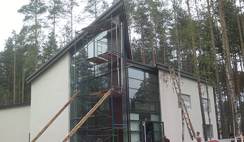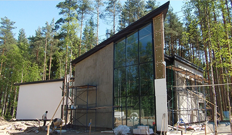 болотные основания, сложная геометрия оболочки здания, высокие остекления и узлы примыкания.