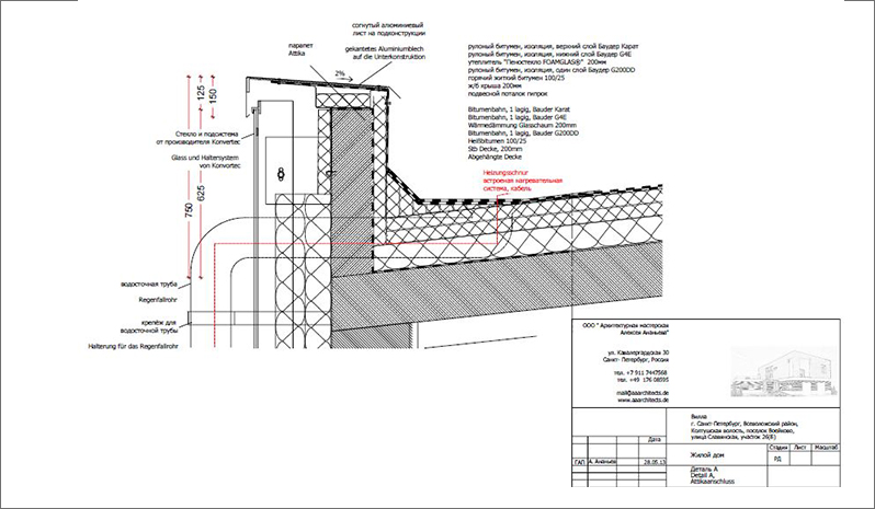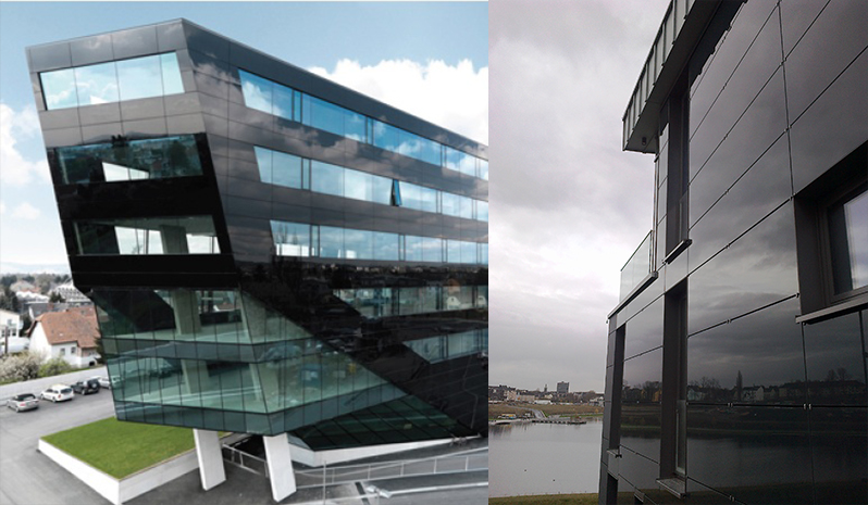 Тёмно-серый зеркальный фасад из стекла со скрытыми креплениями был разработан в рамках тендера архитектурной мастерской Алексея Ананьева совместно с немецкой компанией Konvortec и с российской фасадной фирмой Артглас. Это первый фасад такого вида типа в России в секторе жилого дома.